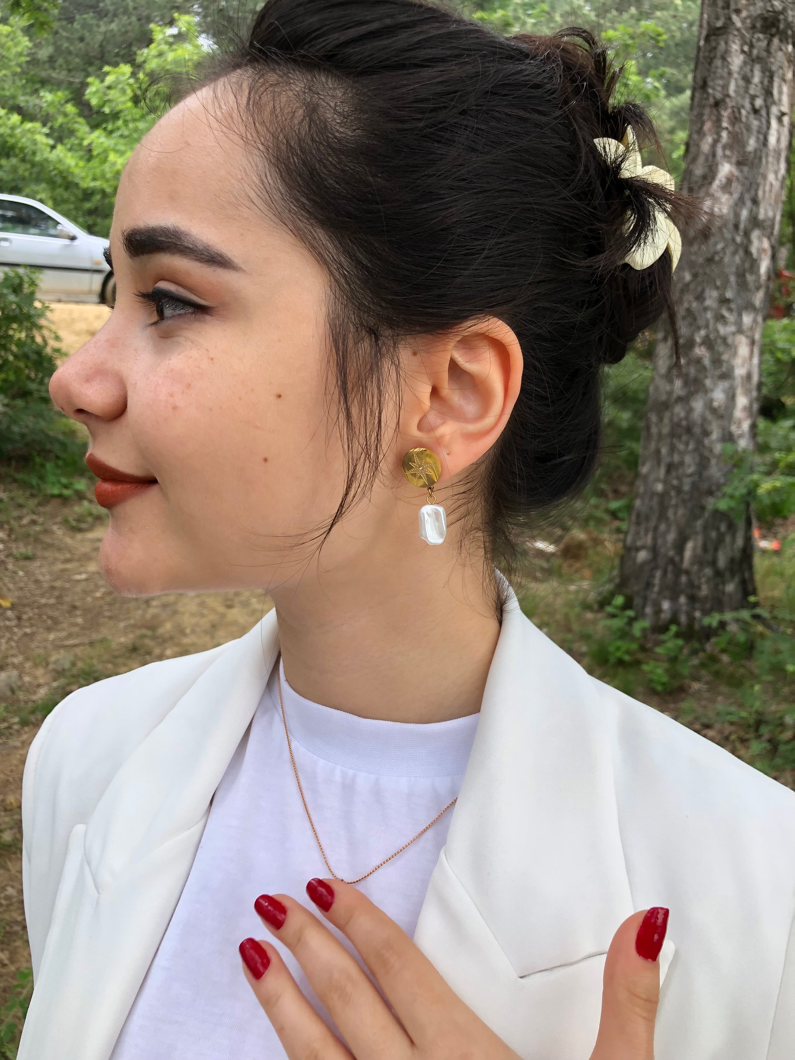 İnci detay gold çelik küpe